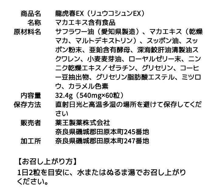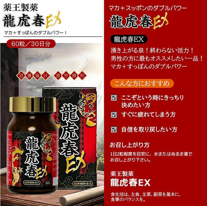 薬王製薬 龍虎春EX マカ スッポン 亜鉛 男性 妊活 サプリ サプリメント 滋養強壮 肉体疲労 60粒(30日分) 1個